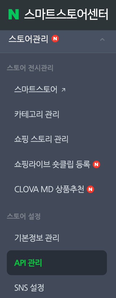 ② 스토어 관리 > 스토어 설정 > API 관리 메뉴로 이동합니다.