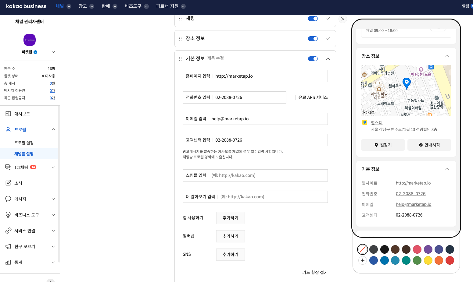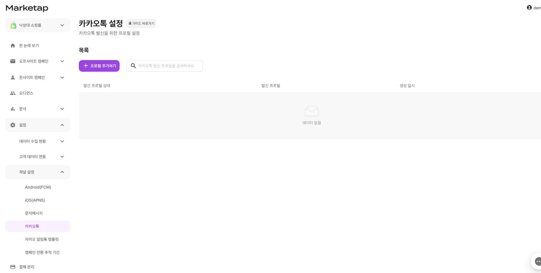 ① 설정 > 채널 설정 > 카카오톡을 선택 합니다.